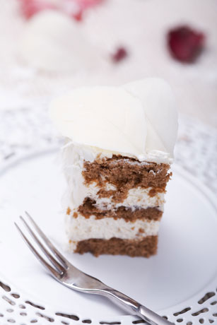 精选伯爵红茶制成的红茶海绵蛋糕融入淡淡的兰姆酒香,香蕉果蓉更多了份香甜滋味,纯白的法国牛奶巧克力如同天使的羽翼般缤纷飞舞,所谓华美浪漫便也不过如此吧!